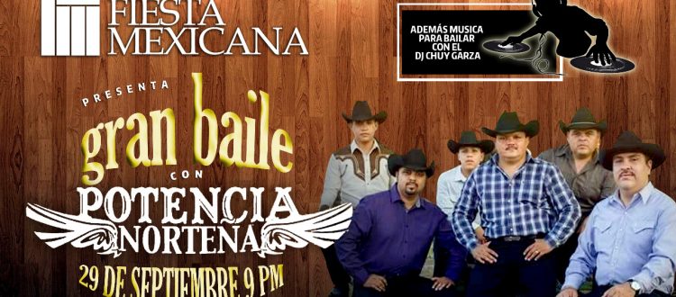 17 Sep Gran Baile con POTENCIA NORTEÑA NO FALTES ESTE 29 DE SEPTIEMBRE EN EL SALON DE EVENTOS DE EL HOTEL FIESTA MEXICANA A PARTIR DE LAS 9 DE LA NOCHE